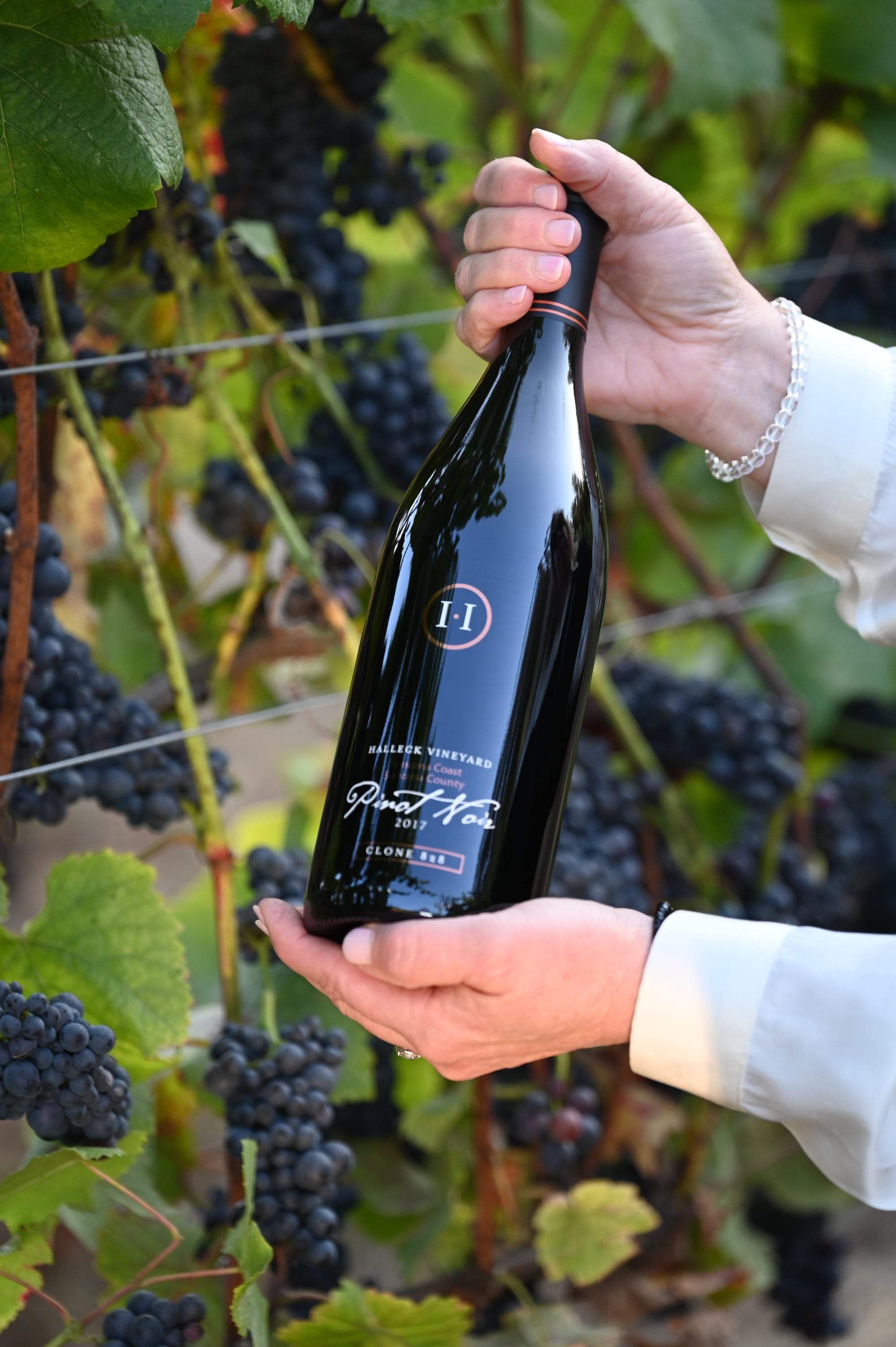 Halleck Vineyard, a one-acre family site, is perched above the Russian River watershed and flanked on the west by the coastal range. It command an expansive view of the rolling Sonoma County Hills to the northeast. Clone 828 is a sub-variety of the grape variety limited quantities here in Sebastopol. We selected it for its distinctive characteristics of dark berry and rich mouth-feel.
