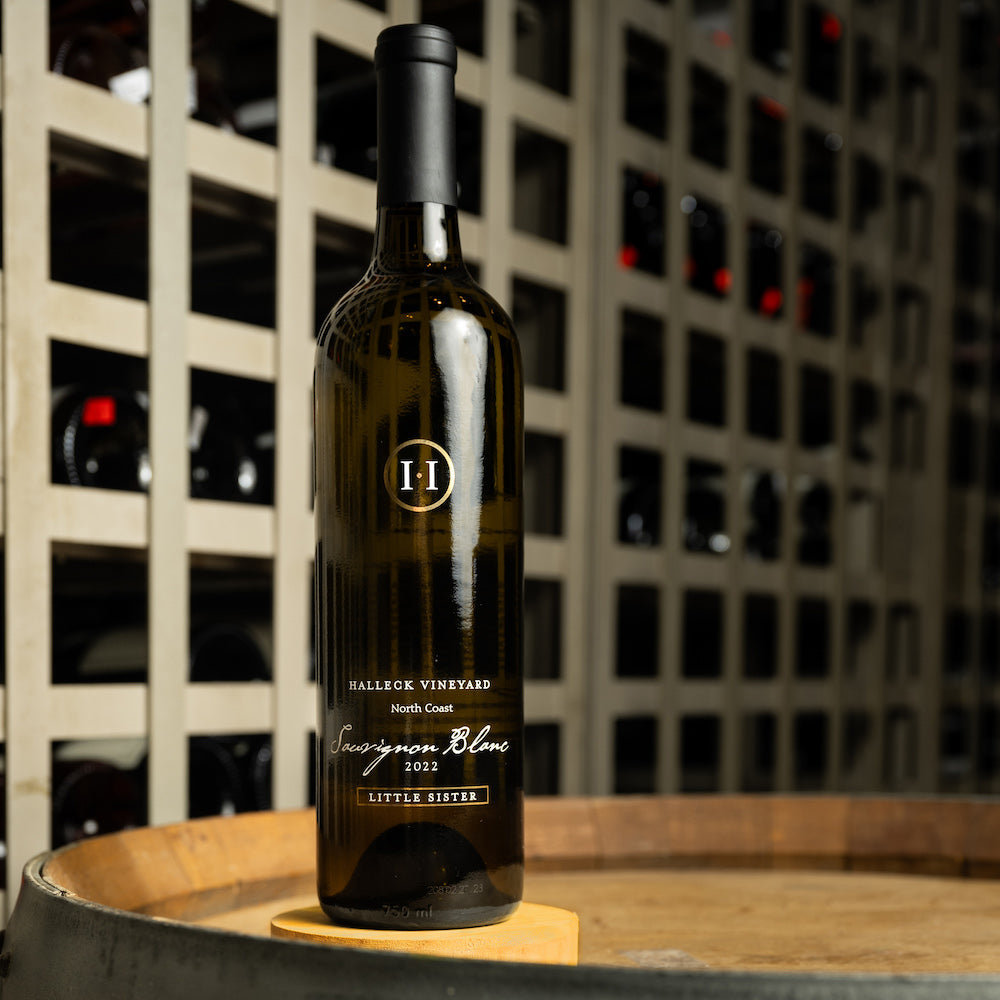 The 2022 Little Sister Sauvignon Blanc is French-style, modeled after a crisp, but rich Sancerre. It leads with the characteristic earthy nose of Sancerre: notes of lemon and floral tones complemented by a touch of sea breeze with the hint of boxwood. The feral nose gives way to classic neutral citrus notes on the palate, full and flavorful. The delivery yields bright acidity for those warm days and light dishes, offering a mid-palate of flinty minerality, a hint of tart pineapple, passion fruit, and salinity on the back palate. The finish is crisp, long and lingering, for which Halleck Vineyard wines are noted.