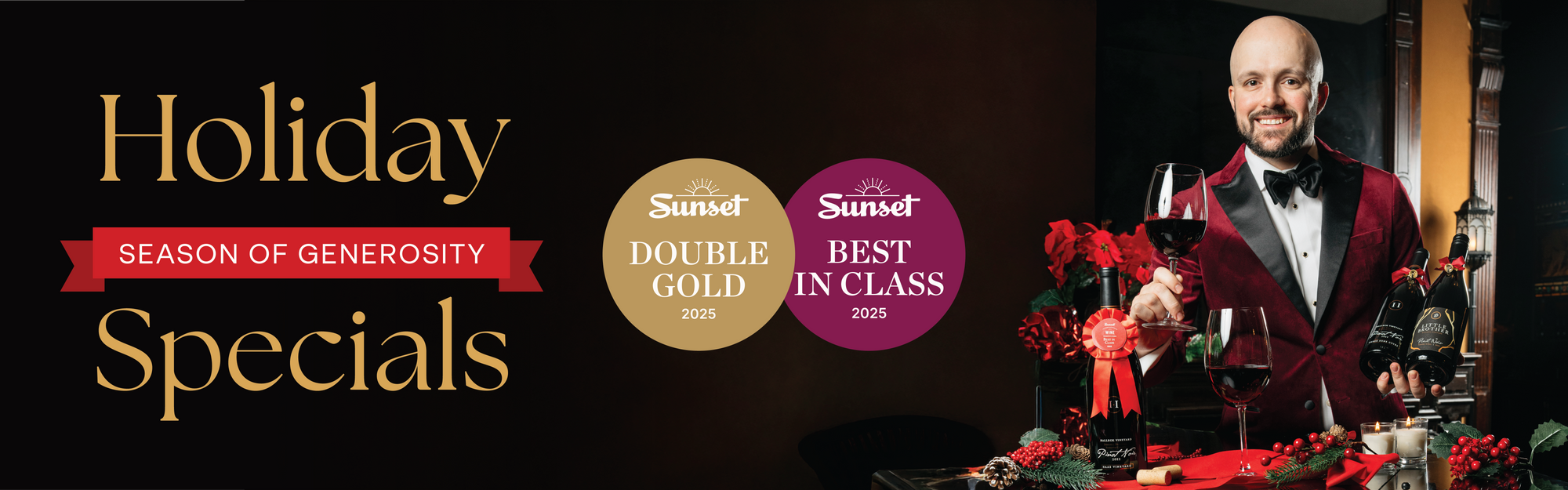 Enjoy this Holiday Red Wine set of succulent Sonoma Pinots not available in stores. Includes our Single Vineyard Haas Sonoma Mountain Pinot Noir, awarded Double Gold at the Sunset International Wine Competition, our award winning Hillside Sonoma Coast Pinot Noir, and our new Little Brother Pinot Noir. Limited reserve selections.