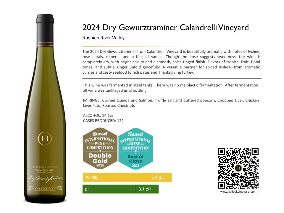 2024 Dry Gewurztraminer Calandrelli Vineyard